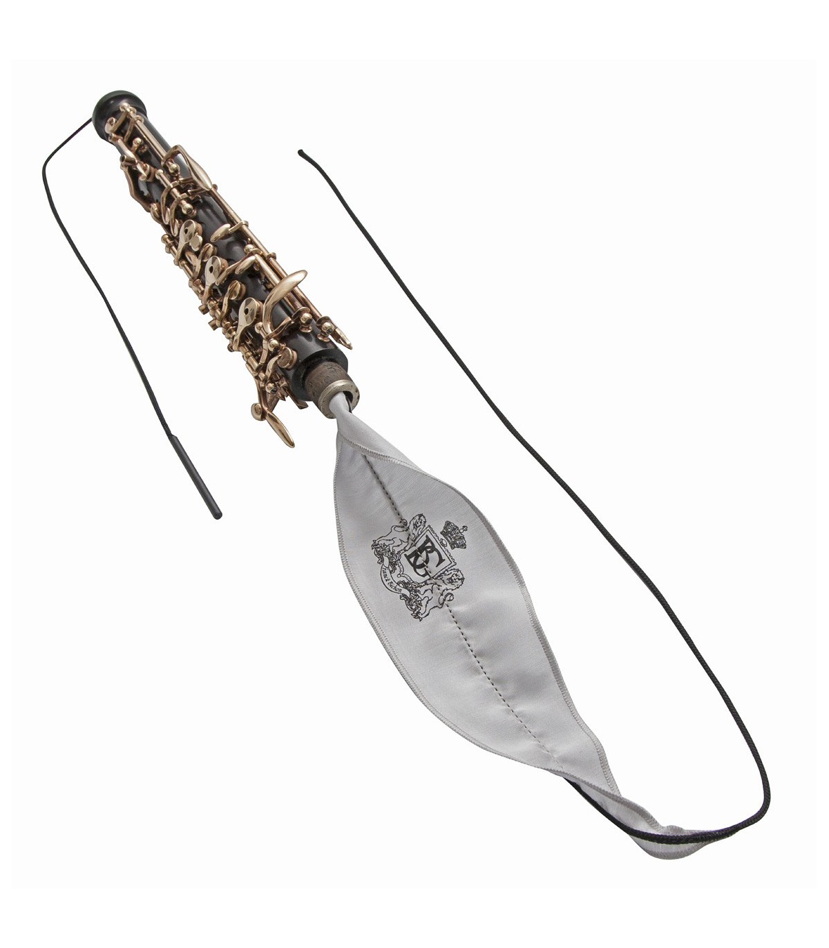 Tradisjonelle pussekluter for obo med snor og lodd. Den minste kluten har snor i begge ender for å hindre at den setter seg fast.
