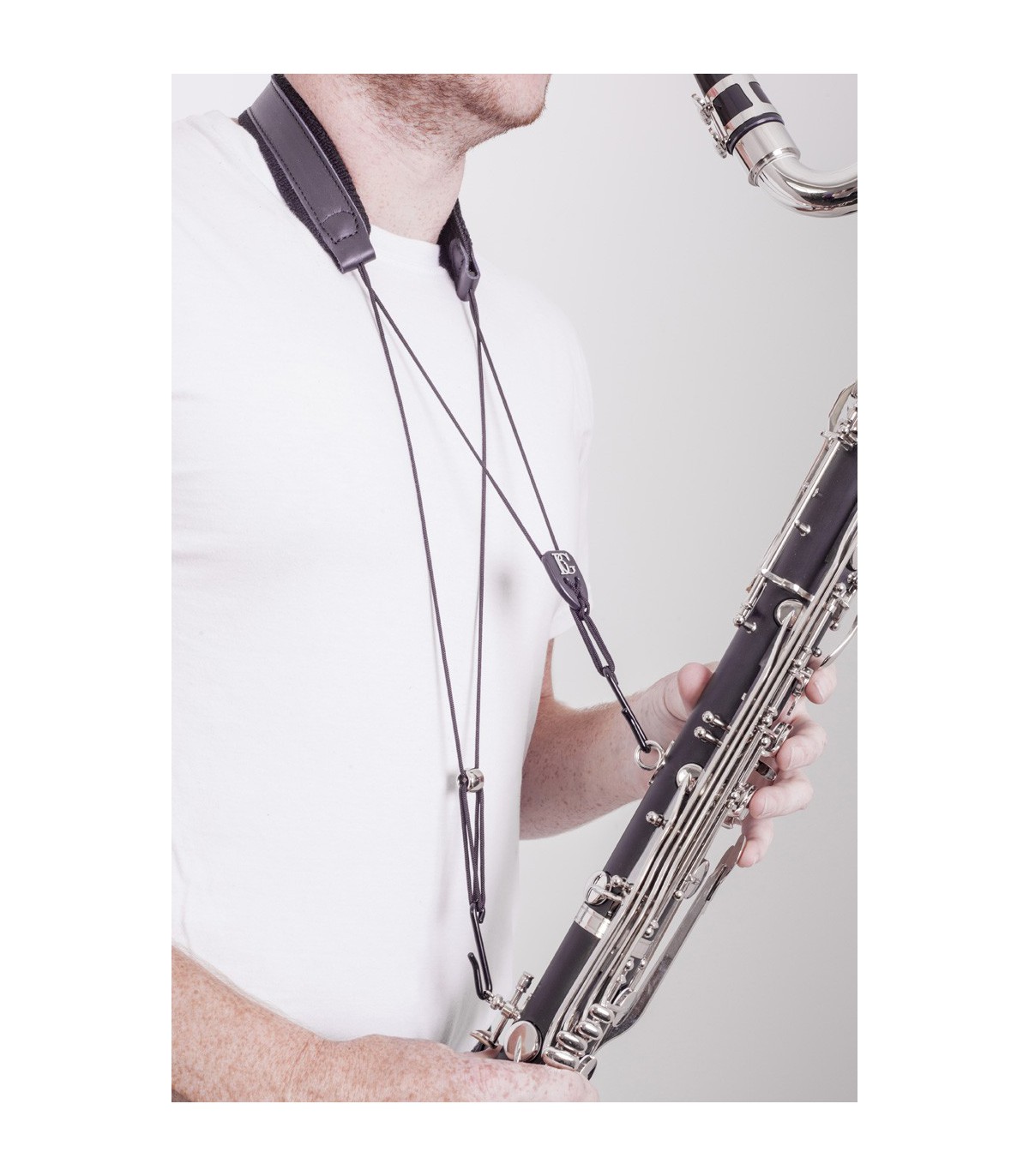 Denne reima har 2 gummikledde metallkroker som gir bedre balanse i instrumentet. Merk at det ikke er alle bassklarinetter som har to fester, så sjekk instrumentet ditt før du bestiller.