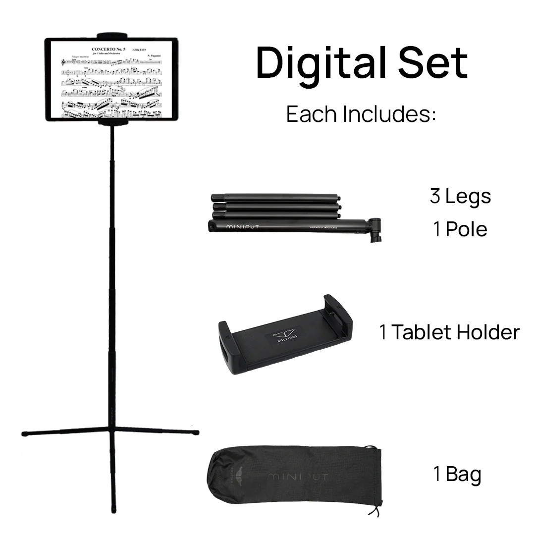 Et lite og lett stativ for nettbrett/iPad. Vekta og det kompakte designet gjør det enkelt å frakte med seg. Stativet passer til nettbrett/iPad med bredde opp til 9,45″, og kan reguleres fra 30cm opp til 123cm