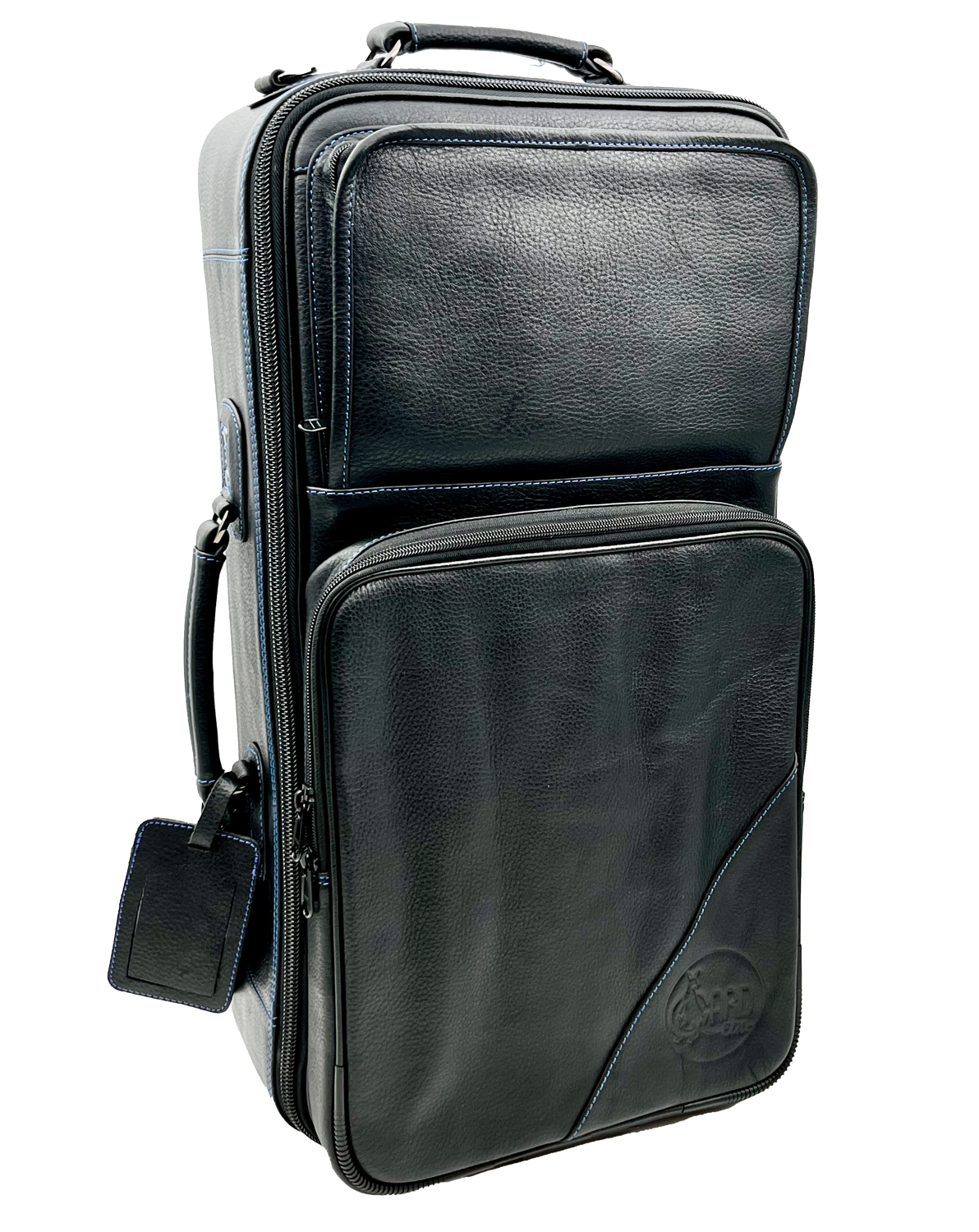En eksklusiv trippelbag for trompet laget i mykt lær av høy kvalitet. Her kan du få plass til opp til tre trompeter, eller få med muter og annet tilbehør. Bagen kan brukes både som skulderveske og ryggsekk.