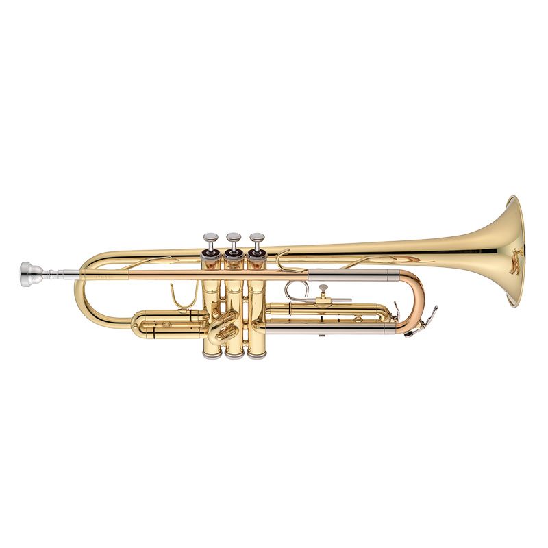 Munnrøret og stemmebøylen er i rosebrass, og den har stillbar trigger.
