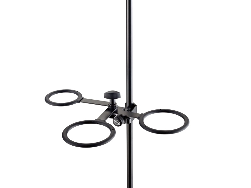 En praktisk og fleksibel muteholder fra K&M som kan festes til stativer med diameter på 7-30 mm. Muteholderen passer for alle vanlige muter for konett, tromper og flygelhorn. Ringene er belagt med gummi for å beskytte mutene mot riper, og er enkle å folde sammen for transport.
