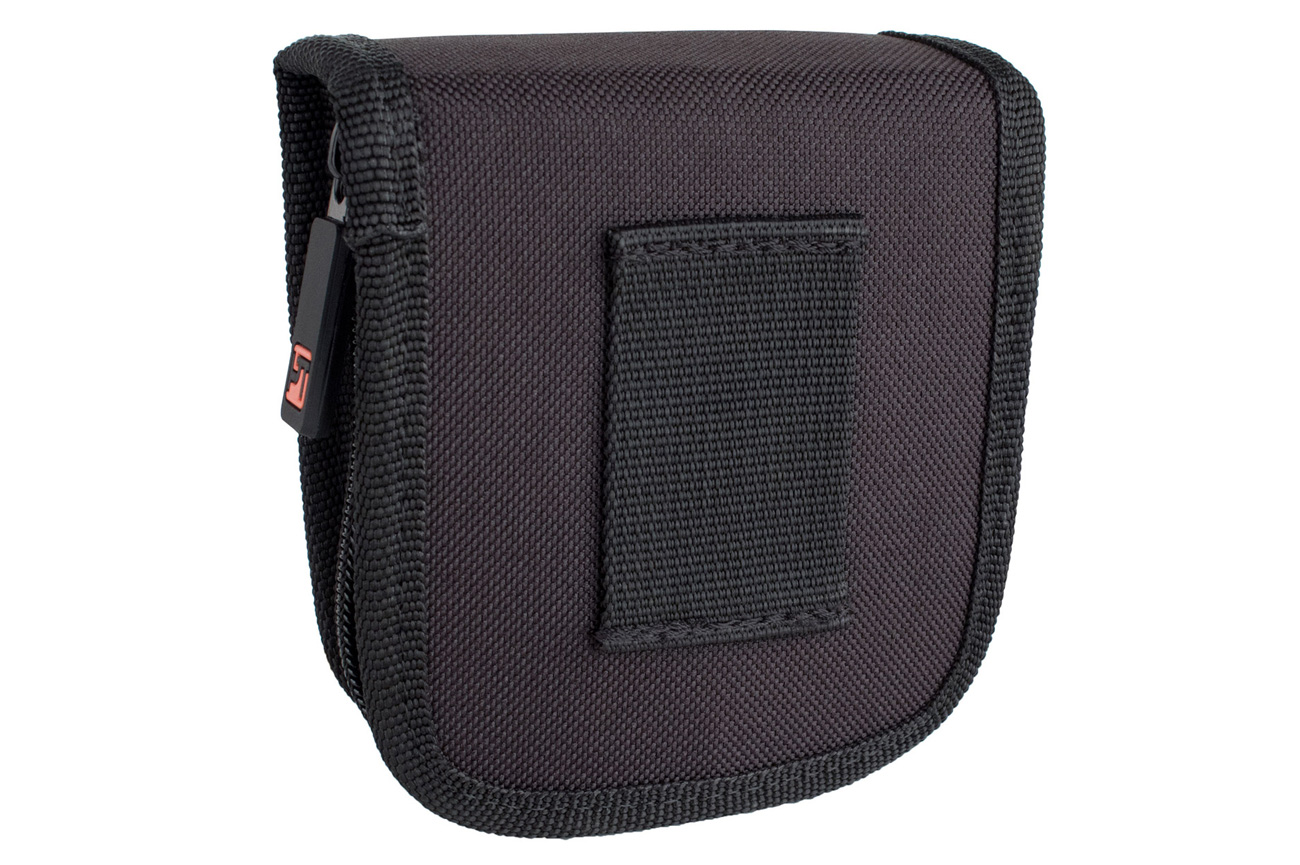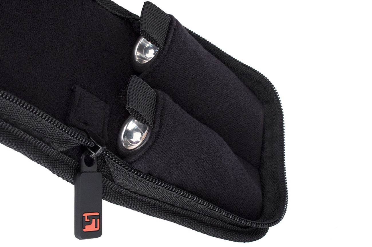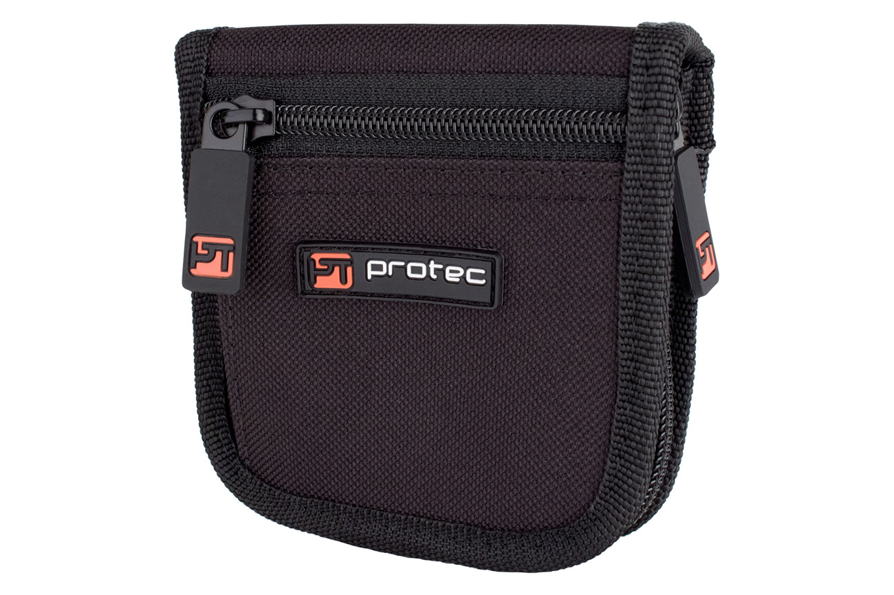 Munnstykkeetui for småmessing i nylon, med glidelås. Denne har plass til to munnstykker, og er ideell for den som veksler mellom trompet, kornett og flygelhorn, eller for munnstykkeentusiaster. Kan festes i belte. Egen lomme i front med gidelås med plass til for eksempel munnstykkebørste.