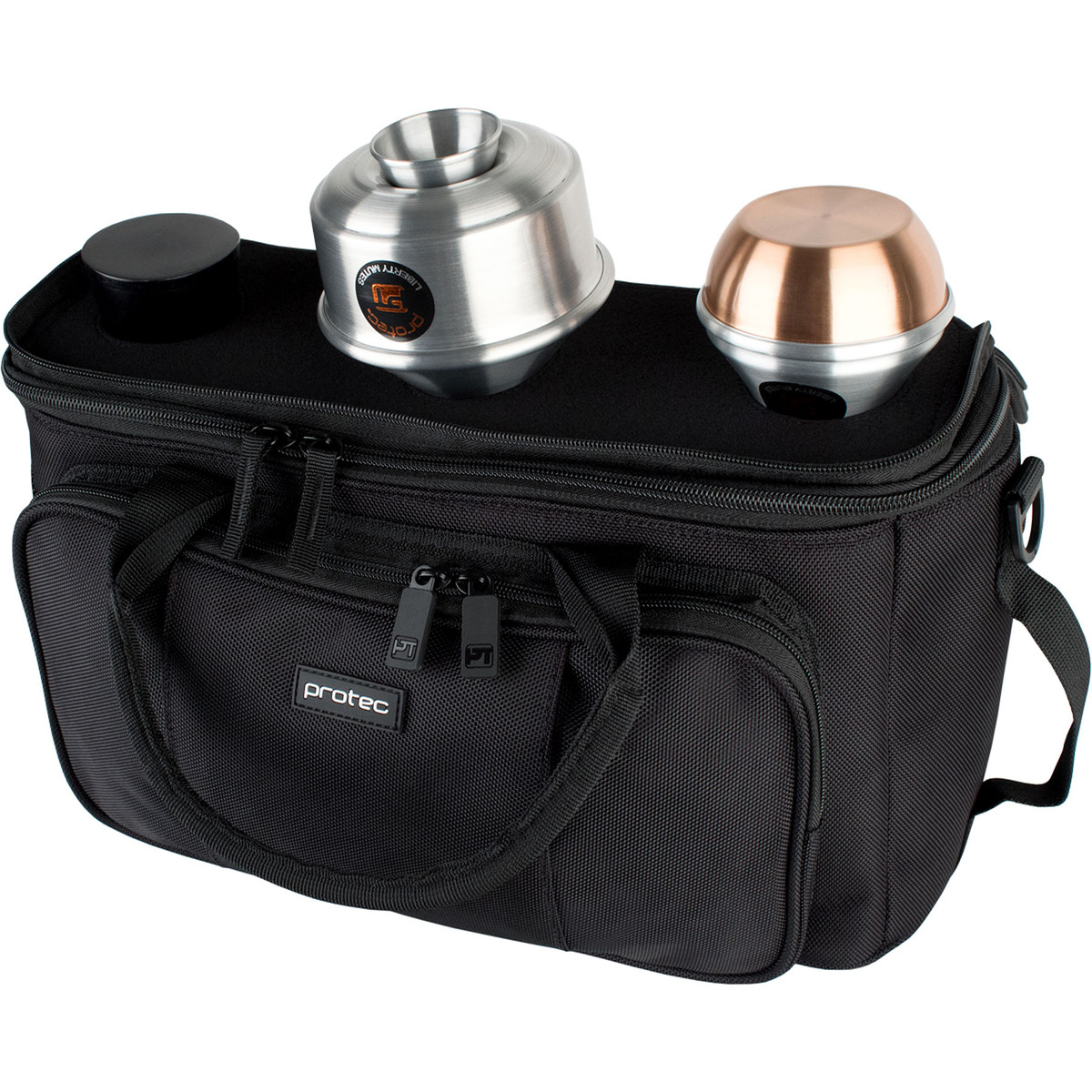 Kan festes til instrumentbagen, eller bæres med medfølgende skulderreim. Denne har også et innebygd mutestativ, som gjør mutene lett tilgjengelige undre spilling.