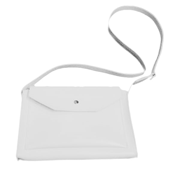 Noteveske fra Unica, laget i hvit skai med mykt stoff på innsiden. Hovedrommet har målene 27 x 17 x 3cm. Den har også en litt mindre utvendig lomme på baksiden.