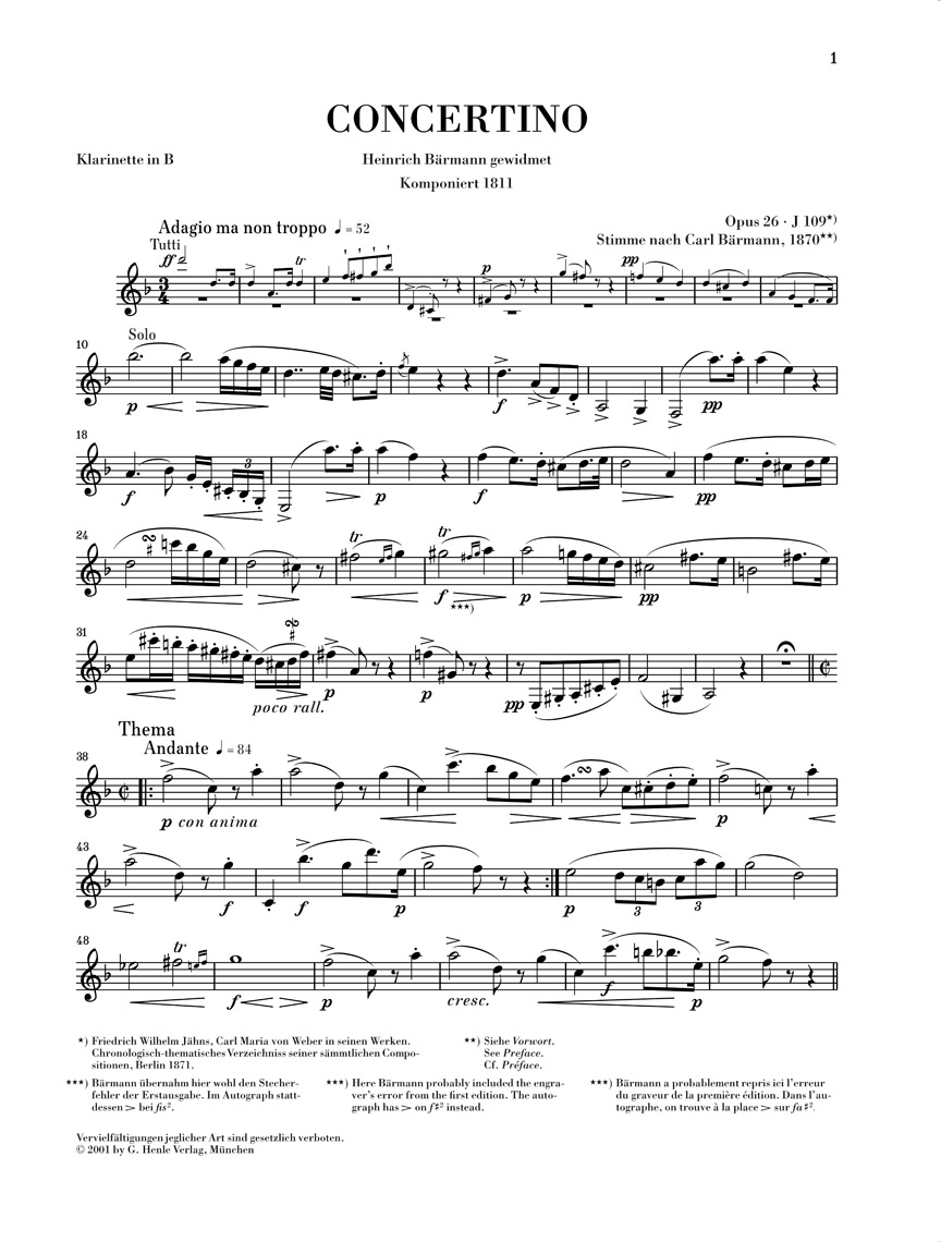 Denne hiten er et populært verk for klarinett og orkester. Denne versjonen fra Henle forlag er med pianoreduksjon, og har to ulike versjoner; Webers urtext-versjon, og den kjente versjonen av Carl Bärmann.