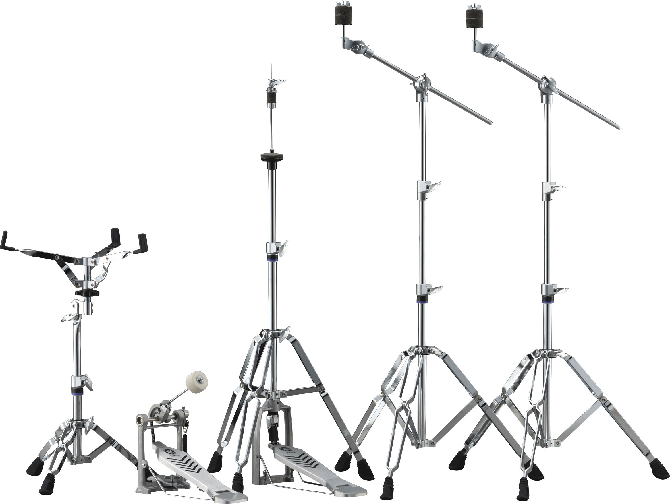 Et Stativsett for trommesett fra Yamaha. Stativene har doble føtter, noe som gjør dem slitesterke og klare for litt juling.